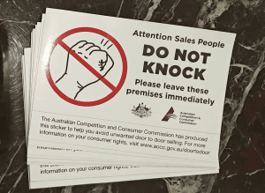 Neighbourhood Watch Ku-ring-gai & Hornsby are grateful for a supply of ‘Do Not Knock‘ stickers, provided by the Australian Competition & Consumer Commission (ACCC).