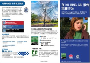 The “Reporting Crime in Ku-ring-gai” leaflet is available in SIMPLIFIED CHINESE.